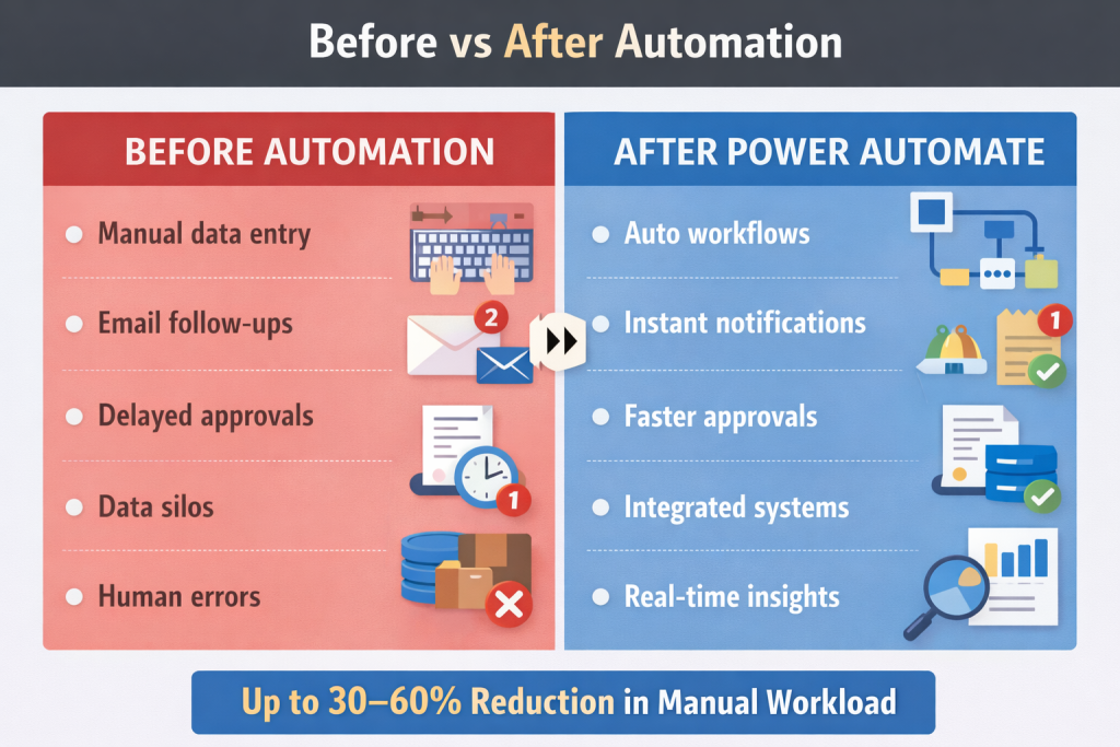 According to Microsoft, automation improves operational efficiency, reduces errors, enhances visibility, and enables better decision-making across organizations .