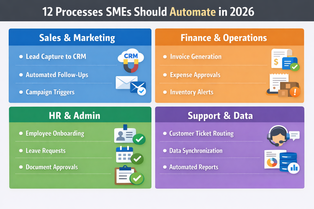 Here are the most practical and ROI-driven processes SMEs should prioritize: